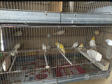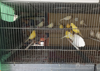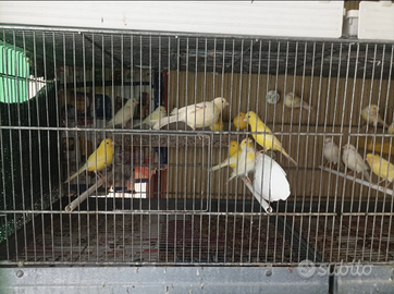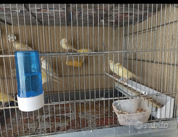 Vendo in BLOCCO 12 euro cadauno sono avorio occhi rossi e portatori di occhi rossi,gialli occhi rossi e gialli portatore di occhi rossi. Invece in coppia 30 euro . Canarini pezzati ?18 l'uno (totale 4: 2 maschi e 2 femmine) .Non meno al prezzo che ho scritto; no perditempo.