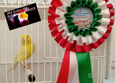Disponibile coppia di canarini riproduttori: - Intenso Lutino M - Brinato Lutino avorio F