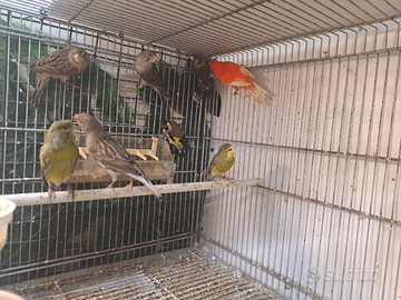 Salve a tutti vendo questi canarini maschi e femmina tra cui maschio ala bianca 25 euro gia pronto ardesia maschio 25 spagnolo verde e gola gialla 25 e due verde lippo tra cui un maschio e una femmina 30 euro coppia .e un maschio dominante testa liscia arlecchino portoghese 25 chi se li prende tutti 100 euro ho accetto scambio