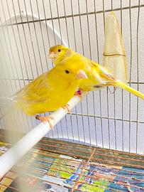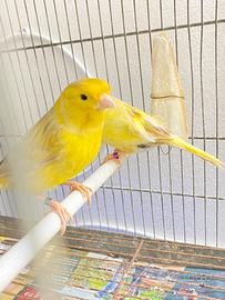 Coppia di canarini con gabbia hanno 2 uova