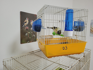 Vendo bel esemplare di canarino,in amore.Il prezzo e' riferito completo di gabbia ed accessori!