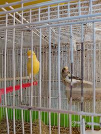 cedo per immediato realizzo causa partenza per lavoro n 3 coppie di canarini di piccola taglia, poco più grossi dei normali spagnoli. una coppia ha un novello quasi pronto da svezzare,le altre 2 hanno le uova.prezzo per singola coppia 40€,se prese tutte e 3 tolgo qualcosa.