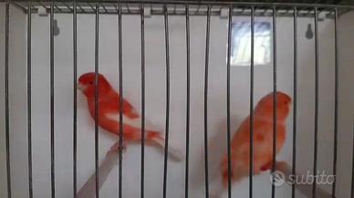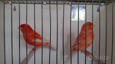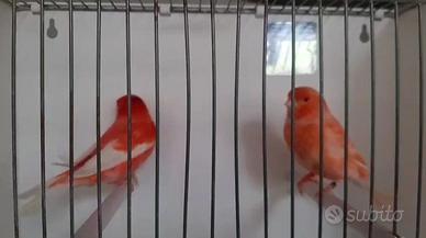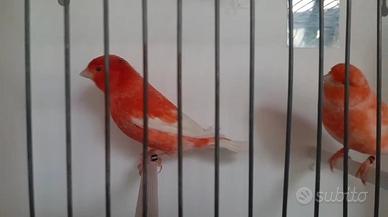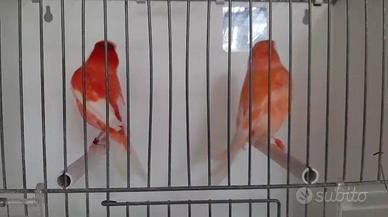 Cedo coppia di canarini rossi ali bianche allevati all'esterno a luce naturale prossimi alla prima cova. No sconti né perdite di tempo.