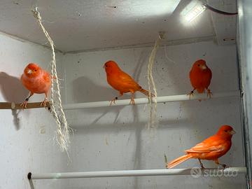 Vendo canarini rossi novelli 2025 anellati FOI. 1 canarino: 20€ 2 canarini: 35€ Ritiro in loco