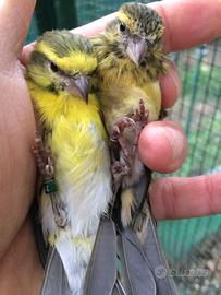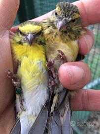Cedo coppia canarini ventre bianco (Crithagra Dorsostriatus) anellati FOI Y 2025. Astenersi sognatori e perditempo. Per ricerca- cardellini,cardinalini,negriti,verdoni,verzellini fronterossa-Serinus-Spinus.