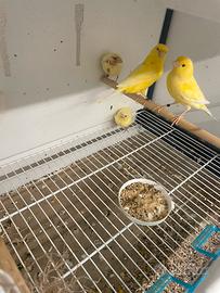 Vendo coppia canarini femmina giallo intenso, maschio giallo brinato del 2025 pronti per la seconda cova