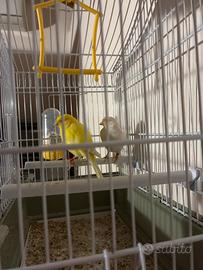 Vendo due Canarini bellissimi che cantano benissimo. Un maschio giallo ed una femmina bianco arancio. Do anche la gabbia, il mangime e la sabbietta.