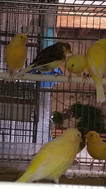 Canarini gialli e pezzati,sia adulti che novelli.