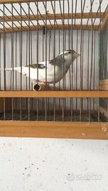 Si cede per esubero il canarino bianco pezzato ardesia in foto . Ha anellino foi 2025. Ottimo cantore Il prezzo è 15 euro non trattabili .