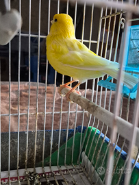 Buongiorno causa trasferimento vendo come in foto gabbietta con accessori, e il canarino giallo maschio di circa 2 anni, in perfetta salute, già mutato e con un bel canto. Contattare solo se veramente interessati no affaristi il prezzo è quello, da ritirare a Catania zona via Palermo.