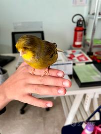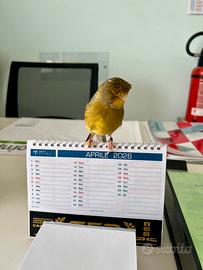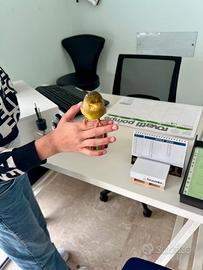 Vendo canarino Gloster maschio allevato a mano e abituato a stare fuori della gabbia. Completo di gabbia e accessori vendo a 40€.
