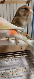 Questa coppia è ideale come balia per diverse specie di uccelli in quanto la femmina ibrida grazie alla conformazione del suo becco e l' attitudine ad allevare ,già dai primi giorni riesce a fare crescere i piccoli Senza problemi. Il maschio di canarino poi l aiuta a portare avanti i piccoli fino a svezzamento.