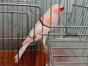 Vendo canarino maschio 2025 con gabbietta in metallo con fondo in plastica completa di mangiatoie e beverino. Ottime condizioni
