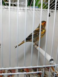 Disponibile in sede canarino maschio incrocio lizard e canarina possibilità di acquistare kit completo per il canarino gabbie mangimi accessori Prezzo 25 euro