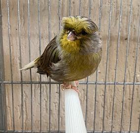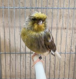 Canarino gloster maschio anellato 2025. €10. Disponibile anche gabbia zincata da 55 cm con accessori. In ottime condizioni già pulita e disinfettata e pronta all'uso. La gabbia €20