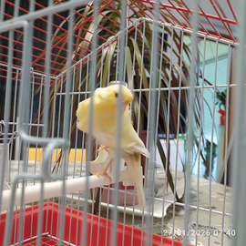 Canarino giallo maschio con piumaggio leggermente arruffato, novello e anellato 2025.