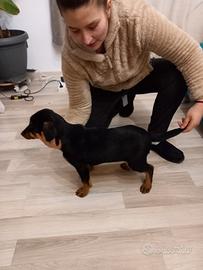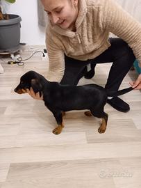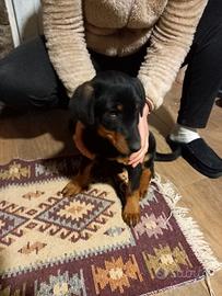 Vendo cucciolo di cane, incrocio tra bassotto e meticcio nero taglia media. Giocherellone, in ottima salute! 2 mesi con primo vaccino fatto.