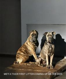 Vendo cuccioli di Cane Corso, con pedigree ENCI/FCI. Prima cucciolata Meti (IG: meti_tales; breeder: canecorso_guardiano; parents: Hugo x Sara) x Thor aka Royal Corso Gang (breeder: Corso Gang Kennel; parents: Konan x Kia). Nascita cucciolata prevista per il 14 febbraio 2025. I cuccioli verranno consegnati dopo svezzamento, vaccinati e microchippati