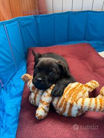 Giovanissimo cane di un anno e cinque mesi, nato da padre corso e madre rottweiler, completo di microchip e tutte le vaccinazioni. Cane dal carattere dolce e affettuoso, sia con le persone sia con altri animali; abituato sia in casa che fuori. Essendo incrociato ha ripreso il manto dal padre e lineamenti e carattere dalla madre. Cerchiamo per lui una compagna di rottweiler o corso, di buona salute e senza complicazioni.