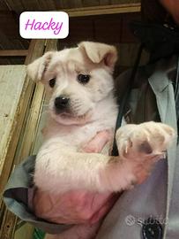 Ecco hacky ultimo fratellino senza una richiesta ha circa 2 mesi e mezzo futura taglia medio contenuta arriverà sui 15 kg .. bello simpatico aspetta la sua famiglia .. si trova in Campania arriva tramite staffetta vaccinato e cippato dopo iter di adozione per info associazione due code e una capanna