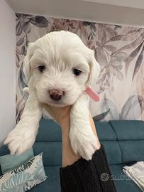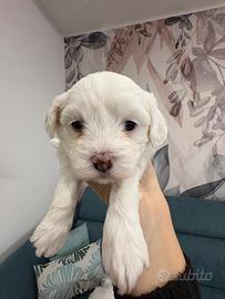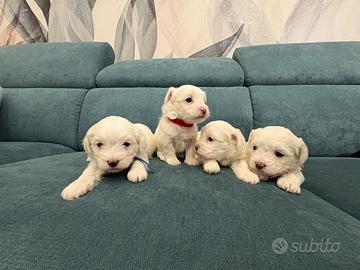 Dolcissimi cuccioli di maltese nati il 20/1 cercano casa. Disponibile un maschietto e due femminucce. Pronti a fine marzo, sverminati e vaccinati. I genitori che sono visibili in foto pesano 3,5kg e 5kg. Per più info whatsapp al 3272184659