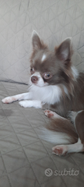 Disponibile per monte bellissimo stalloncino di Chiuhuahua, 24 mesi , a pelo lungo, color lillac e bianco, portatore di colore blu . Carattere dolce , amorevole , affettuoso , ubbidiente e socievole sia con i suoi simili che con gli umani. Già padre di splendidi cuccioli, tra cui pelosetti di colore blu. Linea russa, ottima geneologia ed anche ottimo pedigree Enci. Per info 393 0111422 whatsapp