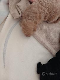 Si cedono cuccuoli di barboncini mamna nana albicocca papa' toy phantom 2 maschi 1 nero phantom 1 champagne Se cedono con libretto di buona salute e 1 vaccino