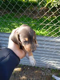 Vendo cuccioli nati il 4 ottobre,figli ottimi cani da caccia taglia media incrocio bassotto -beagle prezzo trattabile