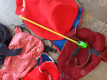 Fatti a mano, tranne quello a righe e l'impermeabile rosso. Sono fatti a mano in lana pesante, ricamato quello blu con perline argento e taffetà al collo, o applicazioni che richiamano il colore principale. Per un cane di taglia piccola di 10 kg circa. Prezzo trattabile
