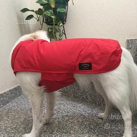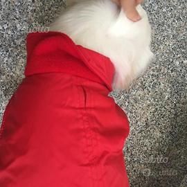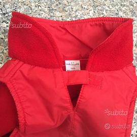 Il mio cane non sopporta i cappottini, quindi vendo cappotto rosso per cani esterno impermeabile e interno in pile, con collo e regolazioni sul colletto e in vita con strap. Foro superiore per il filo del guinzaglio. Caldo e morbido. Usato pochissimo. 100% poliestere. Taglia 43, lunghezza tot senza il colletto 40 cm, circonferenza petto 50 cm. Marca Fashion Dog Made in Italy. Ho tagliato gli elastici che fermano le zampe posteriori. Ritiro a mano o spedizione (spese escluse 7 euro con corriere)
