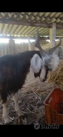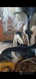 Capra di primo parto , con due capretti maschio e femmina