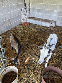 Vendo tre caprette due femmine e un maschio,l'altra femmina mi deve arrivare a giorni,il maschio non e il figlio di queste due femmine, questa in foto ha partorito una sola volta..l altra in arrivo neanche una volta vendo per mancanza di tempo sono abituate dentro