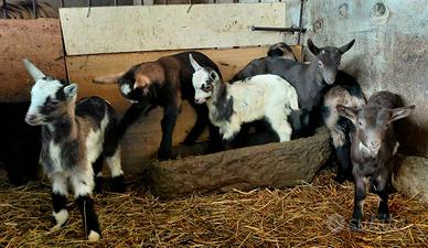 Splendidi capretti e caprette figli di becco Roccaverano puro (vedasi ultima foto). Verranno ceduti una volta che saranno totalmente svezzati