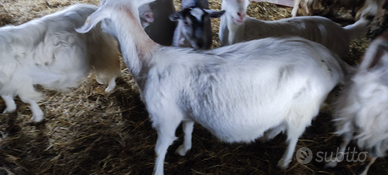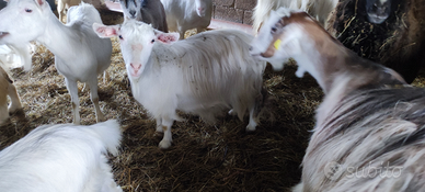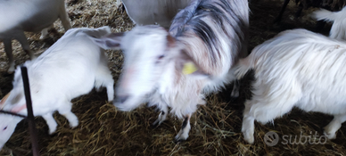 Vendo n 1 becco e 7 capre pronte per partorire tra cui una già partorita con 2 gemelli più 3 caprette di 9 mesi incroci saanen maltese vendo in blocco info 3494289044