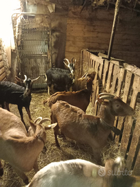 Vendo per esubero, a chi ha codice stalla, capre femmina meticce, figlie di padre murciano puro e mamme saanen, frisa e camosciate. Buona produzione di latte. (Taglia media)
