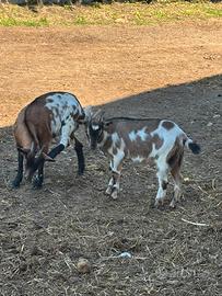 Vendo due caprette nane di cinque mesi . Sono due femmine.