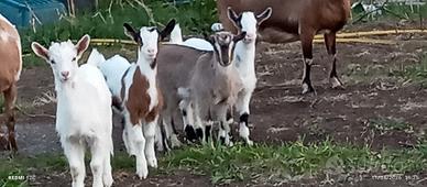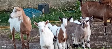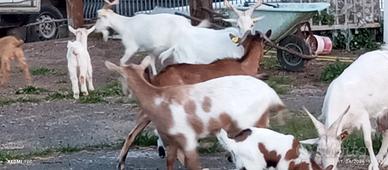Capre SANEEN al primo parto con caprette femmine sotto. Producono 5/7lt. Di latte
