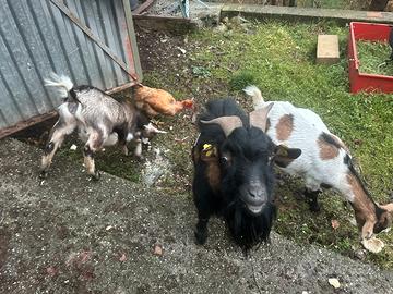 Vendo preferibilmente in blocco Caprette tibetane molto piccole e colorate ma anche separatamente.2 maschi ..uno di 1 anno e l'altro di 3.poi 2 femmine una di un anno e l'altra di 2 entrambe gravide e abituate al contatto umano.