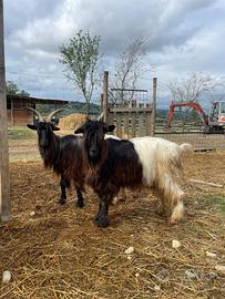 Coppia adulta maschio e femmina capre vallesane . Chippate Vaccinate clostridio e tetano e blutonge . Abituate ad andare al pascolo e stare con i bambini allevamento gea