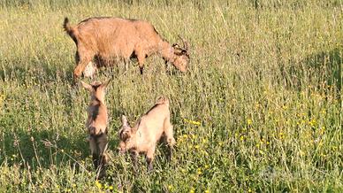 Vendo 2 bellissime nate il 15 aprile caprette sorelle camosciate ora solo prenotazione con caparra. devono stare almeno ancora 1 mese con la madre Prezzo per capretta 135 ? Se prese entrambe 250