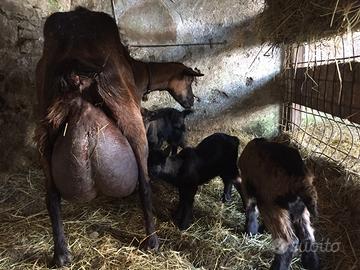 Caprette e giovani becchi nati i primi di aprile 2024 e a marzo 2025 (le foto sono delle madri non in vendita), incroci con linea prevalente camosciata delle Alpi.