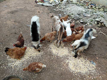 Vendo mamma con 2 capretti nani piccoli ( maschio e femmina), più 2 maschi adulti, più 19 galline, più 3 anatre ( 2 bianche e 1 nero)