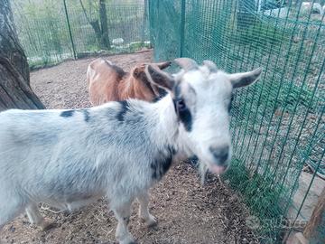 Vendo due caprette nane da compagnia e per bambini,inseparabili maschio sterilizzato e femmina. 100€ entrambe tel. 3465744152