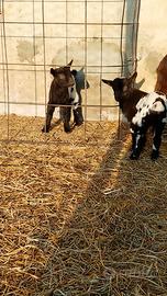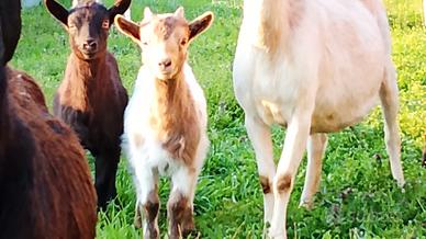 Disponibili caprette nate a dicembre 2025 (mamma media, padre nano) femmina nera 150€ maschio bianco-marrone 70€ nate a febbraio 2026 (genitori piccoli) 2 maschi bianco-nero 70€ l'uno un maschio nero nato a marzo 2025 70€ (genitori piccoli)