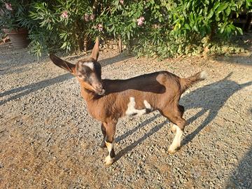 Capretti incrocio saanaen e camosciata delle alpi nati il 14 maggio 2025 sono 2 maschi con le corna , e una femmina senza corna