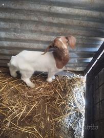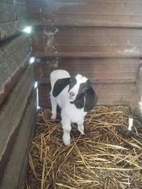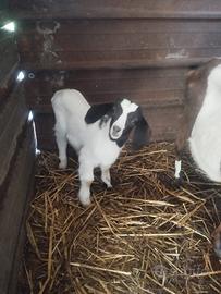 Vendesi Caprette nate il 17 aprile. 1 Femmina (Nera e bianca) 1 Maschio (Marrone e bianco Prezzo di entrambe 160€ Prezzo per 1 sola 90€ Per maggiori informazioni contattatemi.