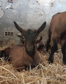 Disponibili capretti maschi e femmine di camosciate delle alpi. Tenuti sotto le mamme. Capre che pascolano in montagna. A partire da 50 euro per gli scolostrati.