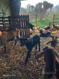 Vendo capretti nati quest' anno. Alcuni incroci tra saanen e camosciata. Figli di capre da latte. Ottimi anche per agriturismi e fattorie didattiche poiche molto socievoli e abituati al contatto con gli umani.