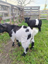 Vendo coppia di capretti maschi nani di circa 5 mesi. Docile ed affettuosi abituati al rapporto umano. Si vendono ad amanti di animali per compagnia ed affezione e non da macello.