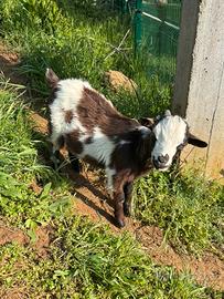 Vendo bellissimo capretto maschio di razza nana tibetana di 5 mesi, è in perfetta salute, abituato al pascolo ed al contatto umano. Solo come animale da compagnia!